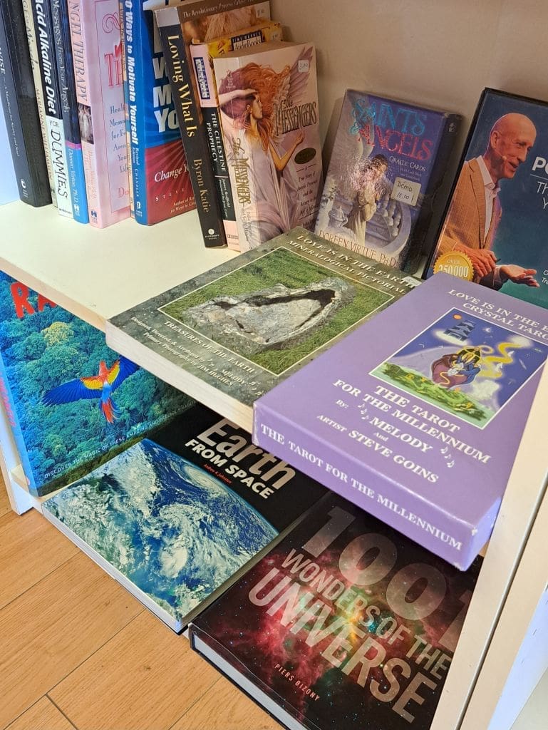 Tu as le gout de t’alléger de tes articles qui ne servent plus… pense a l’Essence-Ciel, nous avons besoin de ton aide. SI ton article est pour le mieux être et en cohérence avec ce que nous offrons à l’Essence-Ciel et si il est en état de vente nous l’accepterons avec joie! Des livres spirituels, des cartes oracle ou des jeux de Tarot que tu n’utilises plus emmène-les à l’Essence-Ciel.